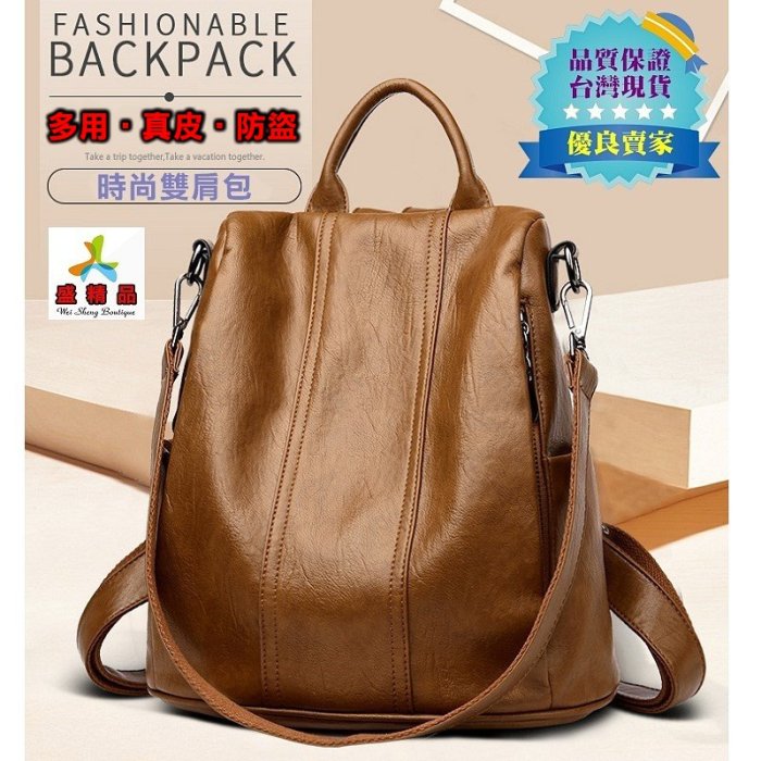 優寶購物《ubao.Tw》特貨品商城,黑貓宅配,取貨付款,【盛精品】百搭防盜真皮雙肩包🌟[台灣公司貨] 四色可選 側背包/單肩包/後背包/休閒包/防盜包 {069} | Yahoo拍賣