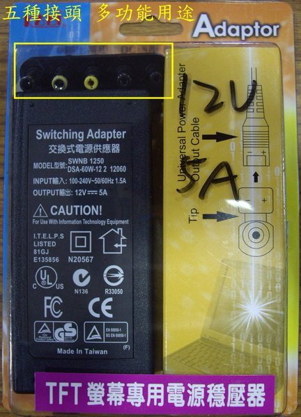 優寶購物《ubao.Tw》特貨品商城,黑貓宅配,取貨付款,..點子電腦-北投...液晶螢幕專用/電源穩壓器12V/5A/含5種接頭~適用多種廠牌【變壓器】680元 | Yahoo拍賣