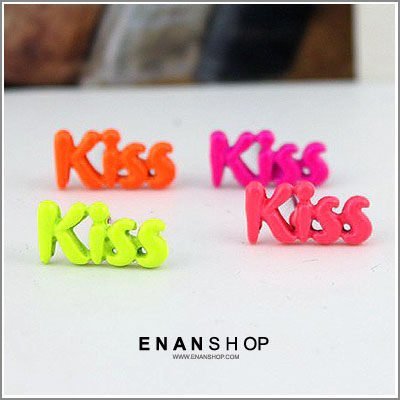 優寶購物《ubao.Tw》特貨品商城,黑貓宅配,取貨付款,惡南宅急店【0132D】正韓劇 韓國飾品 螢光糖果設計kiss英文字母耳環 烤漆風格‧一對價 | Yahoo拍賣