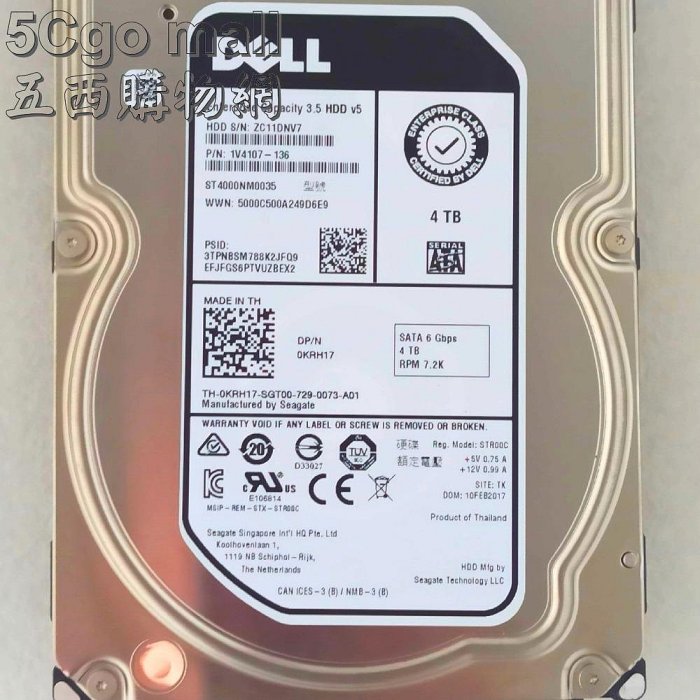 優寶購物《ubao.Tw》特貨品商城,黑貓宅配,取貨付款,5Cgo🏆權宇 原装DELL 1V4107-136 ST4000NM0035 4T SATA 3.5 0KRH17 硬碟 含稅 | Yahoo拍賣