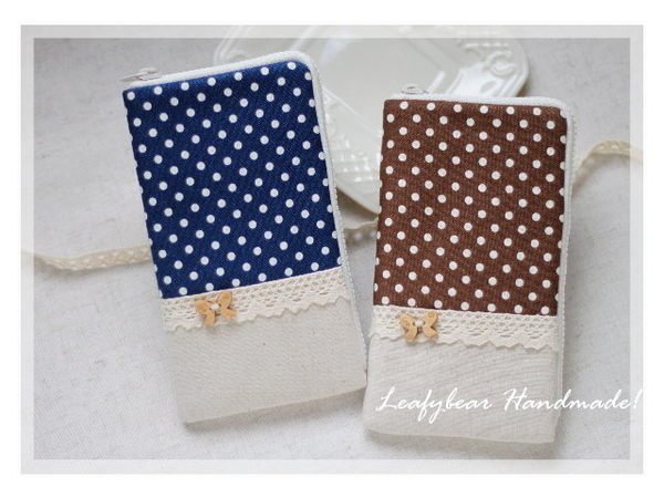 優寶購物《ubao.Tw》特貨品商城,黑貓宅配,取貨付款,✿葉手作✿日本水玉蕾絲(藍˙咖啡)L型拉鍊手機袋/iphone HTC Sony 其他廠牌皆可訂做~ | Yahoo拍賣