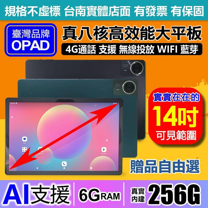 優寶購物《ubao.Tw》特貨品商城,黑貓宅配,取貨付款,最新上市14吋OPAD台灣品牌平板電腦16核6G/256G大容量4G上網電話支援AI視網膜面板有保固遊戲順暢尾牙抽獎贈品 | Yahoo拍賣