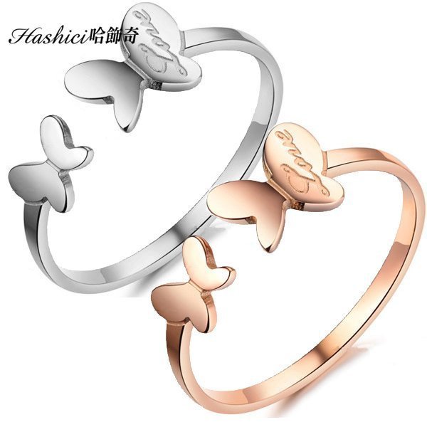 優寶購物《ubao.Tw》特貨品商城,黑貓宅配,取貨付款,電鍍玫金 雙蝶飛舞 白鋼戒指 氣質正妹款 蝴蝶 單只價【BKS394】哈飾奇 | Yahoo拍賣