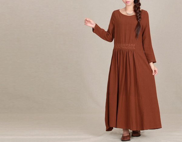 優寶購物《ubao.Tw》特貨品商城,黑貓宅配,取貨付款,秋/冬文藝優雅棉質長袖連衣裙(老銀屋) | Yahoo拍賣
