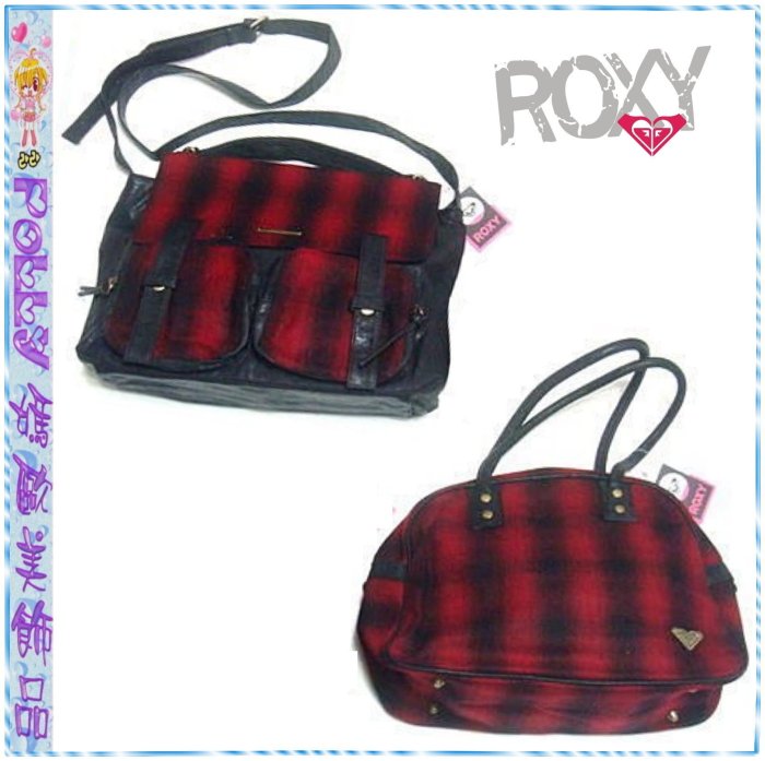 優寶購物《ubao.Tw》特貨品商城,黑貓宅配,取貨付款,↘清倉特價ROXY前拉鍊口袋黑色皮質/紅黑蘇格蘭呢手提/斜背包32×30×9cm、保齡球包35×25×13cm | Yahoo拍賣