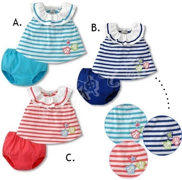 優寶購物《ubao.Tw》特貨品商城,黑貓宅配,取貨付款,❤ 大老婆小寶貝❤海軍風條紋貝殼女寶寶上衣+小褲套裝(80/90/100) | Yahoo拍賣