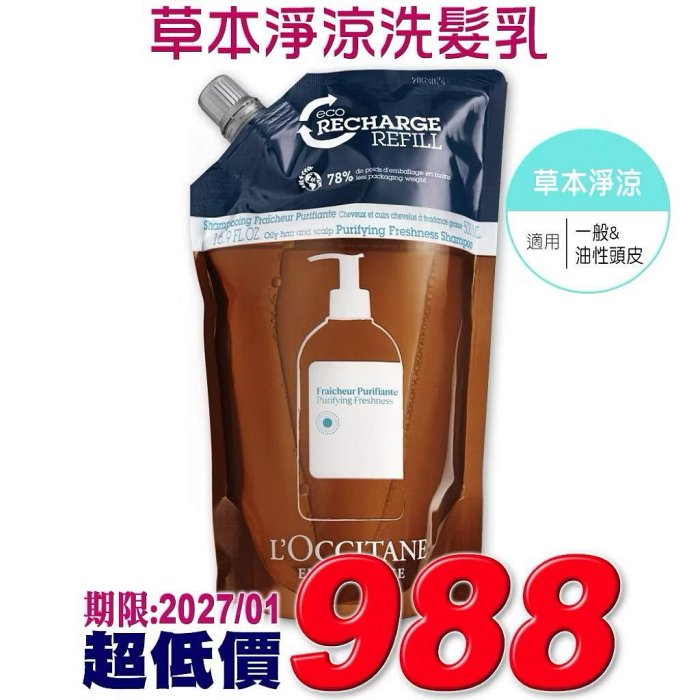 優寶購物《ubao.Tw》特貨品商城,黑貓宅配,取貨付款,【美麗久久】歐舒丹 草本淨涼洗髮乳補充包500ml《台灣專櫃貨中文標》 | Yahoo拍賣