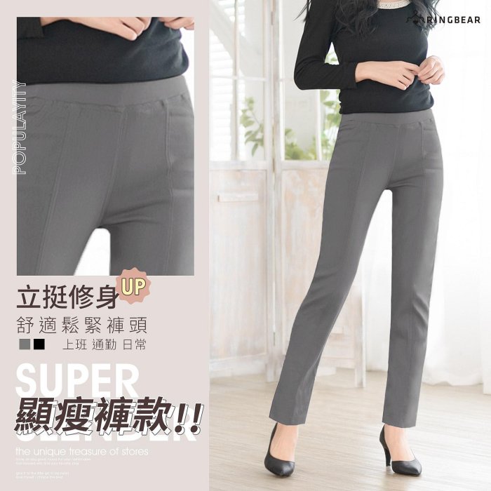 優寶購物《ubao.Tw》特貨品商城,黑貓宅配,取貨付款,長褲--營造長腿妹-鬆緊褲頭中央壓線設計萊卡素面長褲(黑.紫M-6L)-P49眼圈熊中大尺碼 | Yahoo拍賣