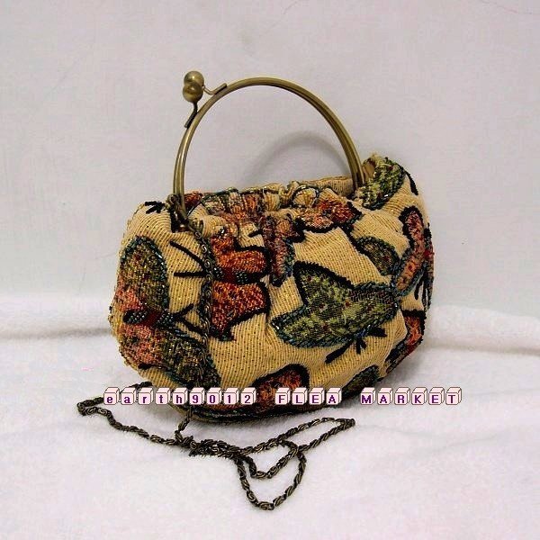 優寶購物《ubao.Tw》特貨品商城,黑貓宅配,取貨付款,復古味 鑲金線蝴蝶彩珠繡珠釦圓弧形針織晚宴鍊口金斜背手提包 | Yahoo拍賣