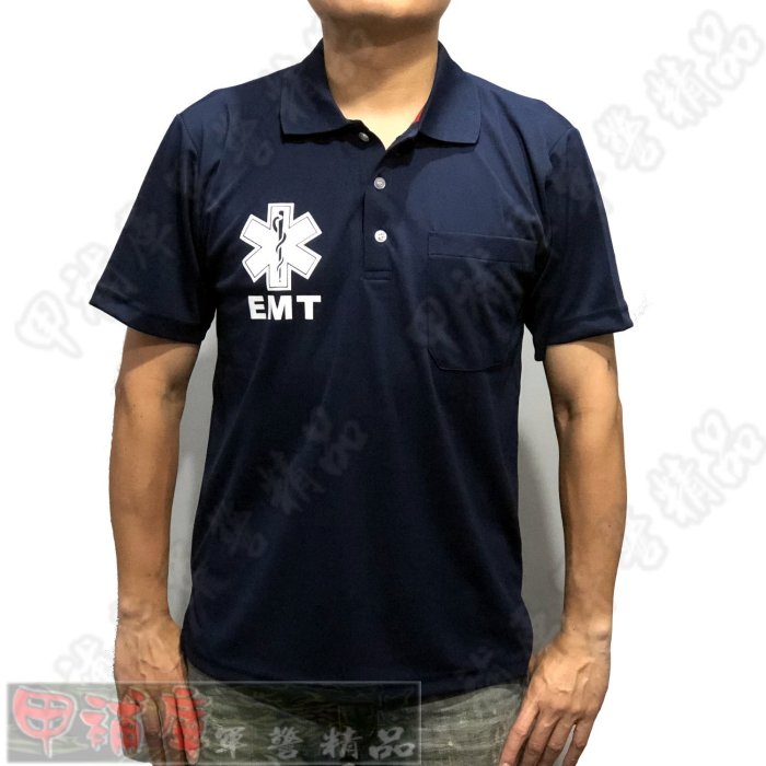 優寶購物《ubao.Tw》特貨品商城,黑貓宅配,取貨付款,《甲補庫》EMT緊急救護技術員生命之星印刷深藍色短袖polo衫~透氣涼衫 | Yahoo拍賣