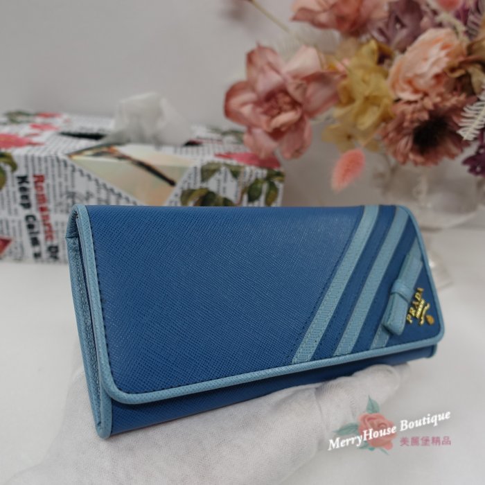 優寶購物《ubao.Tw》特貨品商城,黑貓宅配,取貨付款,【美麗堡精品】 PRADA OUTLET全新真品 防刮 1M1132 條紋+小蝴蝶 土耳其藍+淡藍【現貨】 | Yahoo拍賣