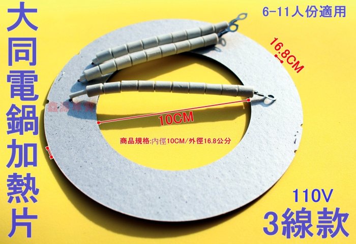 優寶購物《ubao.Tw》特貨品商城,黑貓宅配,取貨付款,TATUNG 大同電鍋電熱片 適用10人.11人份電鍋 加熱片 加熱器 3線 正廠品質 3線電鍋加熱片 大同電鍋維修零件 | Yahoo拍賣