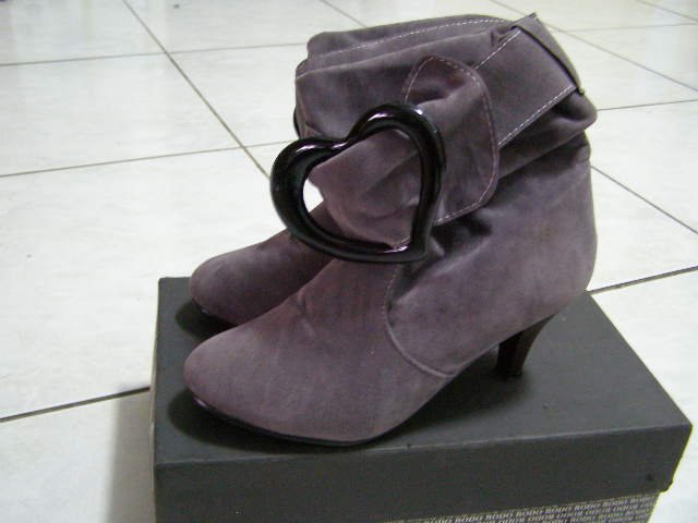 優寶購物《ubao.Tw》特貨品商城,黑貓宅配,取貨付款,丹丹鞋坊-灰色麂皮心形短靴 | Yahoo拍賣