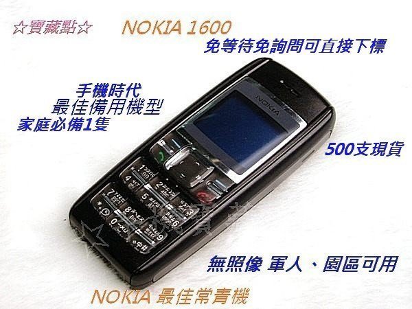 優寶購物《ubao.Tw》特貨品商城,黑貓宅配,取貨付款,☆手機寶藏點☆ NOKIA 1600 長效待機 最佳備用機型 白色已售完 所有功能正常 歡迎貨到付款 ZZ148 | Yahoo拍賣