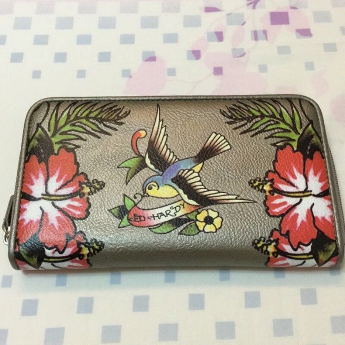 優寶購物《ubao.Tw》特貨品商城,黑貓宅配,取貨付款,Ed Hardy全新絕版愛情鳥圖騰灰色長夾 | Yahoo拍賣
