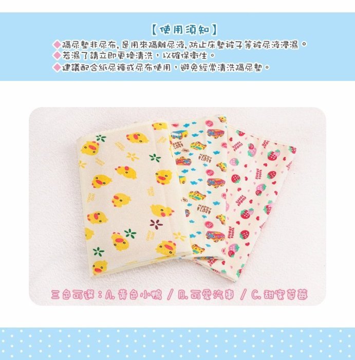 優寶購物《ubao.Tw》特貨品商城,黑貓宅配,取貨付款,【MY+DNA熊本部】防水隔尿墊 尺寸(60cm*80cm)-甜蜜草莓.可愛汽車.黃色小鴨 阻隔尿液 完全防水 | Yahoo拍賣