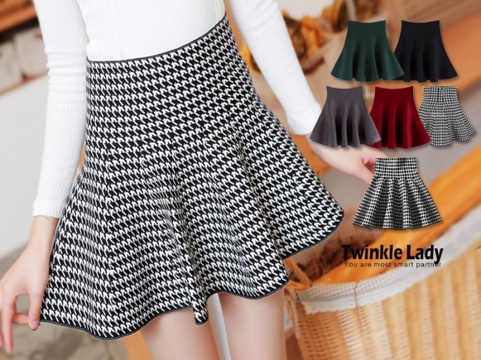 優寶購物《ubao.Tw》特貨品商城,黑貓宅配,取貨付款,『現貨』秋冬韓妞不敗穿搭 針織超顯瘦 千鳥格純色 高腰傘襬短裙【GK0001】- 崔可小姐 | Yahoo拍賣
