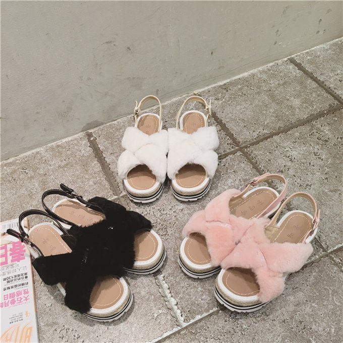 優寶購物《ubao.Tw》特貨品商城,黑貓宅配,取貨付款,[ ohya梨花 ] =韓國帶回=最新春夏新款甜美俏皮穿搭可愛毛毛交叉帶厚底涼鞋 | Yahoo拍賣