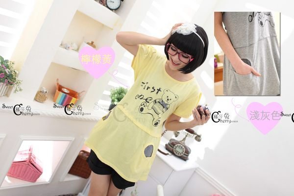 優寶購物《ubao.Tw》特貨品商城,黑貓宅配,取貨付款,[橘子兔的精品衣物店]~孕婦裝上衣系列~韓版專櫃品牌格紋緞帶領結熊圖案夏季短袖後有腰綁帶上衣 | Yahoo拍賣