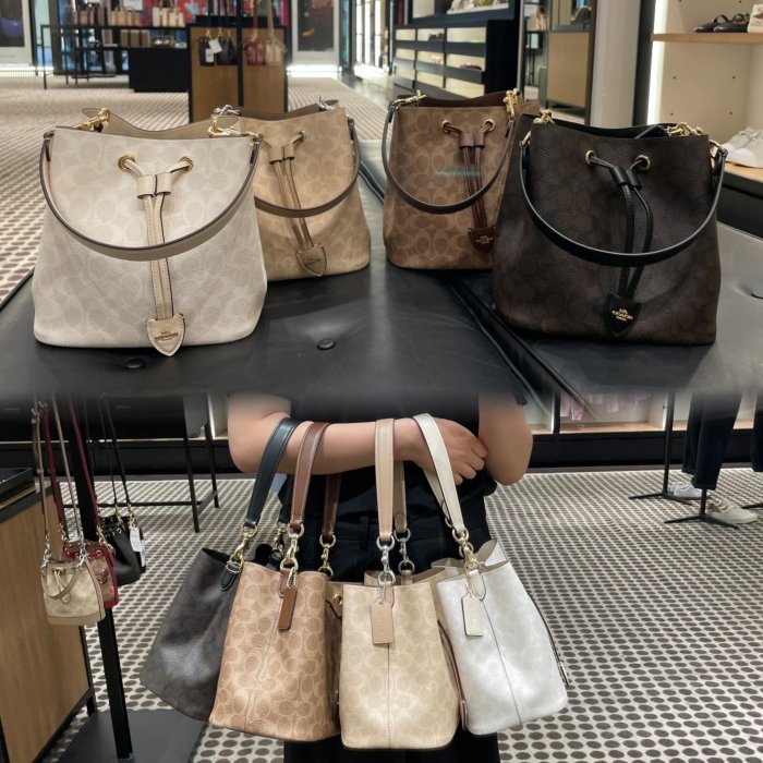 優寶購物《ubao.Tw》特貨品商城,黑貓宅配,取貨付款,NaNa代購 Coach CBH07 Rowan經典老花女士抽繩水桶包 斜背包 單肩斜挎手提女包 附購證 | Yahoo拍賣