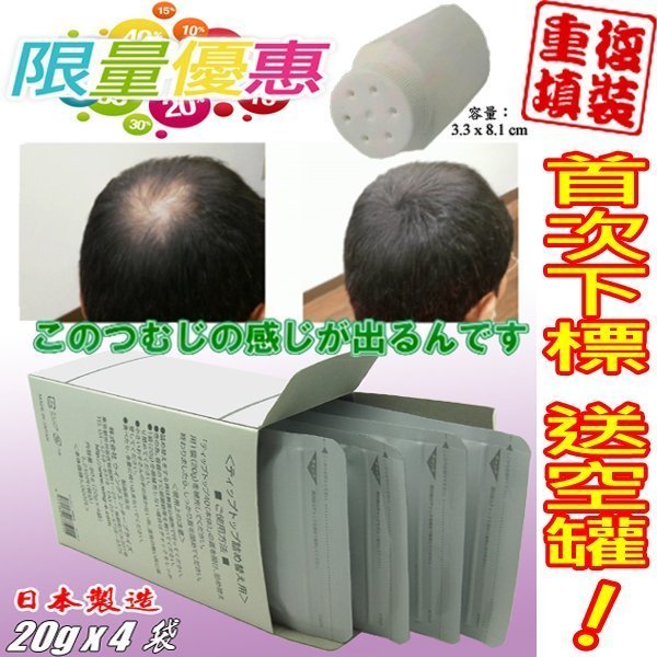 優寶購物《ubao.Tw》特貨品商城,黑貓宅配,取貨付款,纖維造髮【補充包4入全新盒裝拆售】日本製髮絲 植物纖維 瞬間增髮『首次下標送空罐』 (黑色、深咖啡色 可混購) | Yahoo拍賣
