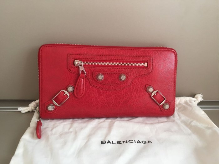 優寶購物《ubao.Tw》特貨品商城,黑貓宅配,取貨付款,Balenciaga 巴黎世家 紅色拉鏈長夾 皮夾 銀釦近全新 | Yahoo拍賣