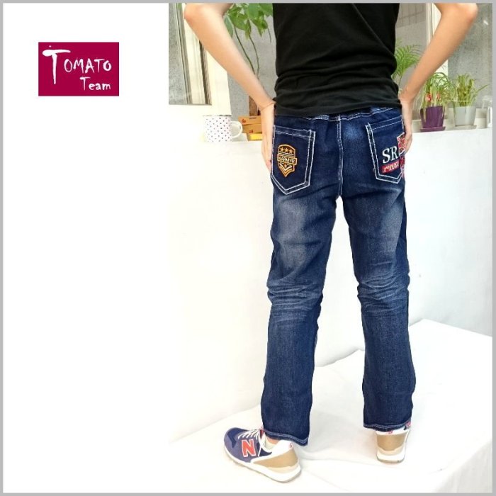 優寶購物《ubao.Tw》特貨品商城,黑貓宅配,取貨付款,《蕃茄丁》出清130'140m//【6FC2033】腰加大版 ‧ SR米字旗方標 ‧ 刷洗色厚款牛仔褲///中大童 | Yahoo拍賣