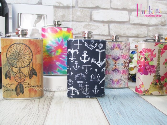 優寶購物《ubao.Tw》特貨品商城,黑貓宅配,取貨付款,☆[Hankaro]☆ 歐美流行印刷圖案造型不鏽鋼酒壺~(合併批發另洽) | Yahoo拍賣