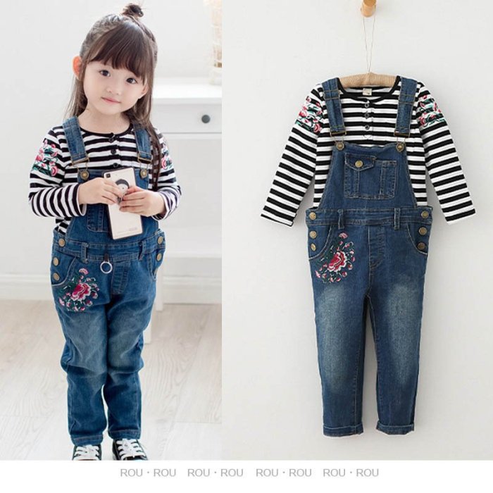 優寶購物《ubao.Tw》特貨品商城,黑貓宅配,取貨付款,零碼出清不退換~女童吊帶褲。ROUROU。春秋女童中小童刺繡花牛仔吊帶褲 0212-114 | Yahoo拍賣