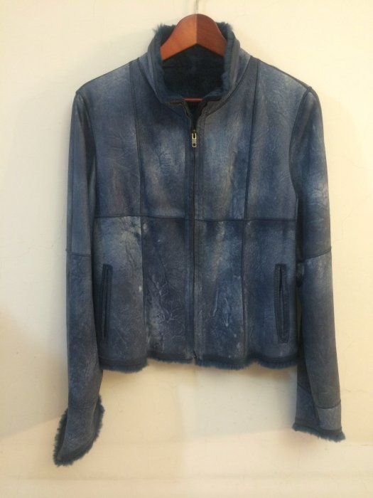 優寶購物《ubao.Tw》特貨品商城,黑貓宅配,取貨付款,10001元起標 MICHELLE FAUX FUR 超有型 小羊皮藍色渲染 皮外套 法國製 歐美街頭時尚 | Yahoo拍賣