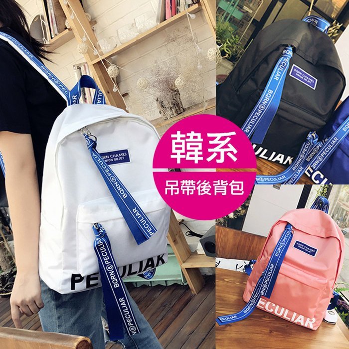 優寶購物《ubao.Tw》特貨品商城,黑貓宅配,取貨付款,【JS 姊妹時代】【PW8020】韓系潮流緞帶字母吊帶旅行後背包雙肩包大容量大包包黑色側背包 | Yahoo拍賣