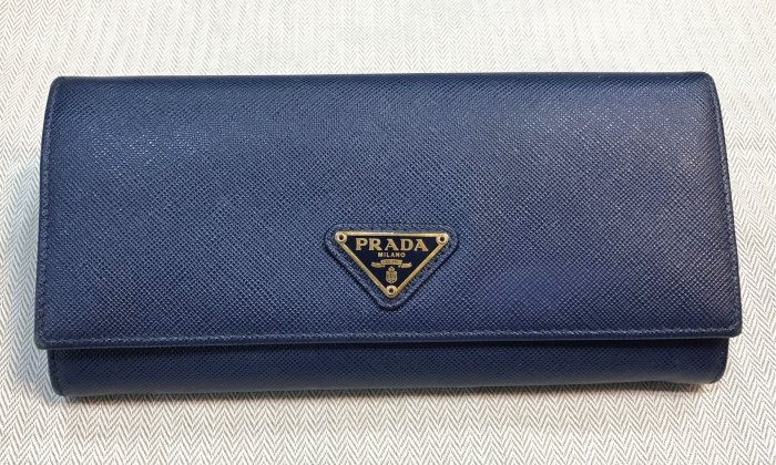 優寶購物《ubao.Tw》特貨品商城,黑貓宅配,取貨付款,《當肯二手名品》PRADA 海軍藍色 防刮 牛皮 雙扣 長夾 ㊣ | Yahoo拍賣