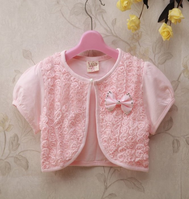 優寶購物《ubao.Tw》特貨品商城,黑貓宅配,取貨付款,[C.M.平價精品館]80~150/純棉百搭立體花絹短袖/長袖小外套 白/粉色 | Yahoo拍賣