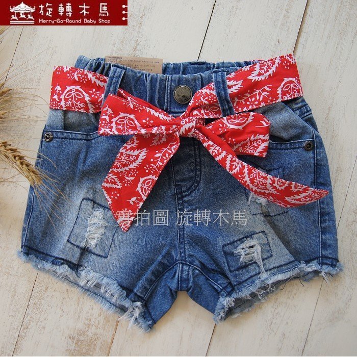 優寶購物《ubao.Tw》特貨品商城,黑貓宅配,取貨付款,台灣現貨/出清9號"【171306】BUNNYJOY春夏18196紅綁帶牛仔短褲 | Yahoo拍賣