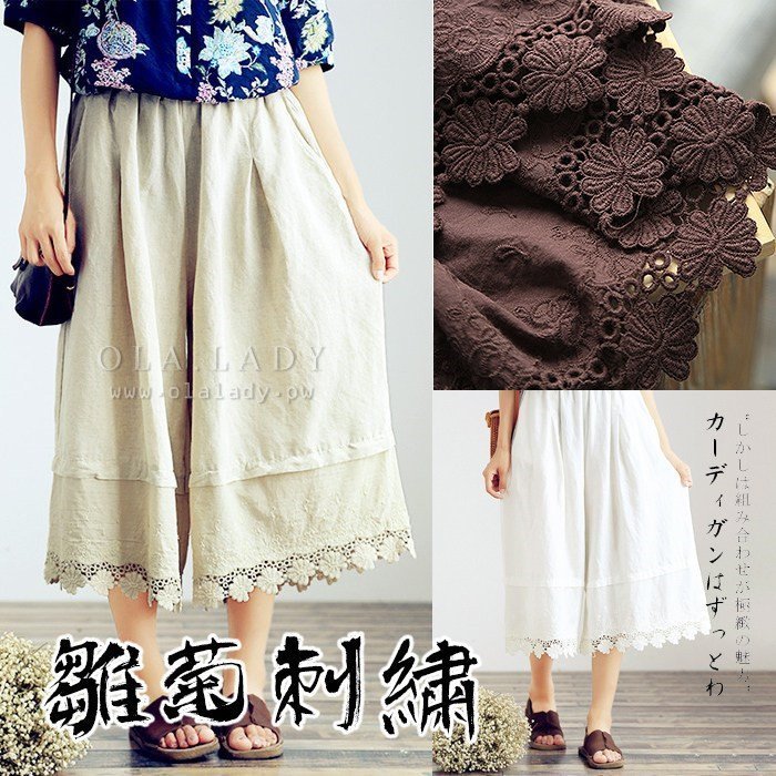 優寶購物《ubao.Tw》特貨品商城,黑貓宅配,取貨付款,森女日系 雛菊刺繡 鬆緊腰七分褲 休閒褲 棉麻寬褲裙 襯褲#WGX10035預購☆Le.Marron☆ | Yahoo拍賣