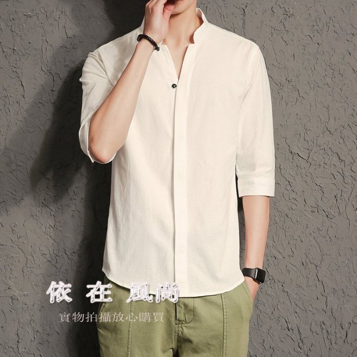 優寶購物《ubao.Tw》特貨品商城,黑貓宅配,取貨付款,中國風漢服襯衫【依在風尚】新款日系潮流立領七分袖襯衫原宿風男士亞麻短袖襯衣大尺碼功夫衫襯衣3色GHYS.238 | Yahoo拍賣