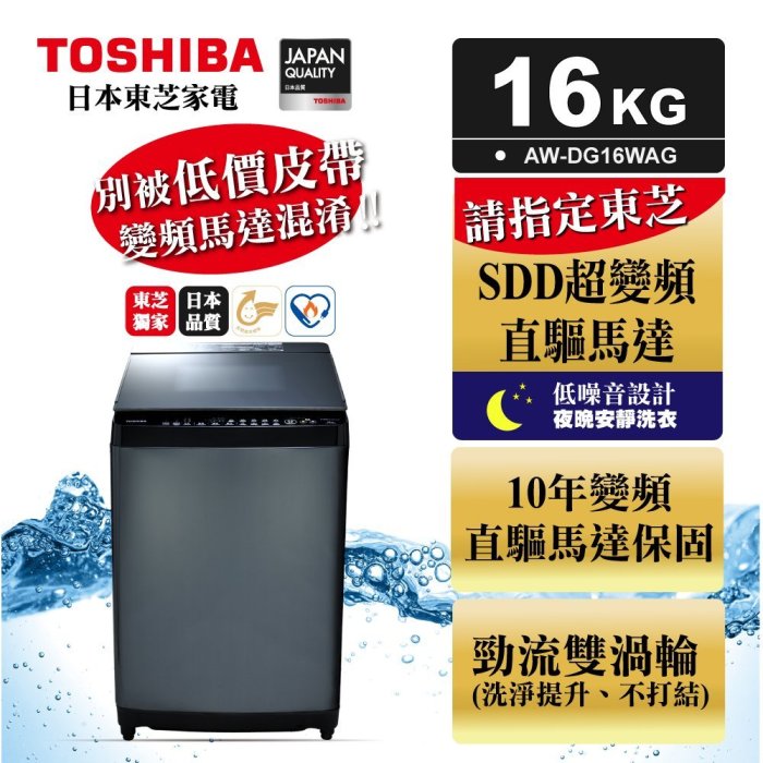 優寶購物《ubao.Tw》特貨品商城,黑貓宅配,取貨付款,《586家電館》TOSHIBA 東芝洗衣機16公斤變頻 【 AW-DG16WAG】 | Yahoo拍賣