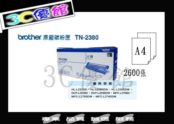 優寶購物《ubao.Tw》特貨品商城,黑貓宅配,取貨付款,☆3C優館☆Brother TN-2380原廠碳粉匣高容量~L2365DW/L2700D/L2700DW/L2740DW | Yahoo拍賣