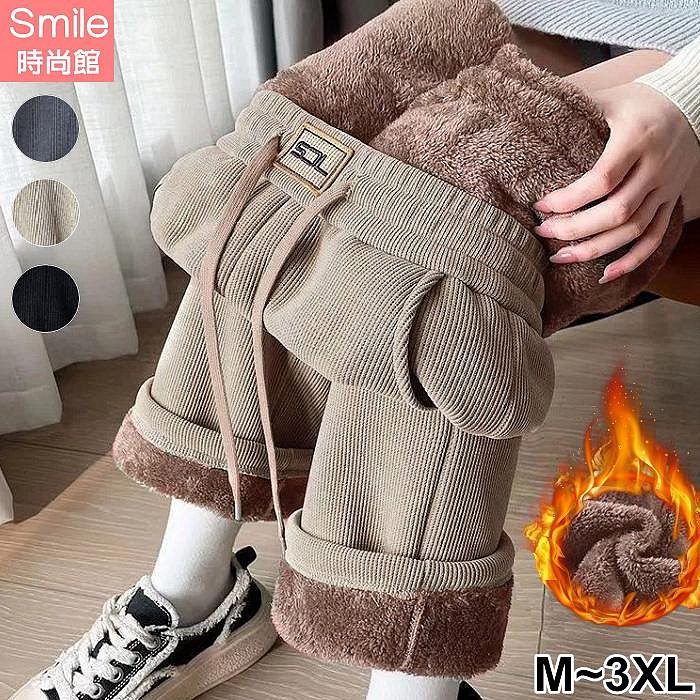 優寶購物《ubao.Tw》特貨品商城,黑貓宅配,取貨付款,【V5032】SMILE-冷冬保暖.加絨加厚貼標抽繩鬆緊腰直筒長褲 | Yahoo拍賣