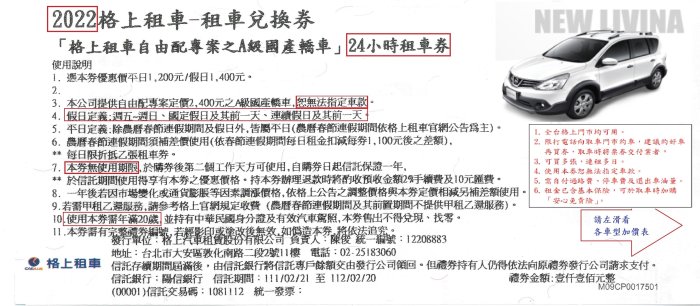 優寶購物《ubao.Tw》特貨品商城,黑貓宅配,取貨付款,持22年格上租車券"可能"租到NEW LIVINA 1.6取車平日刷100假日刷300 | Yahoo拍賣