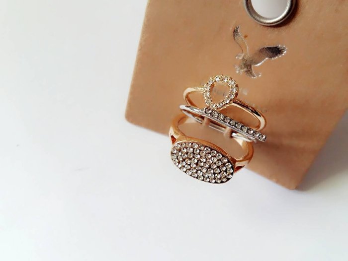 優寶購物《ubao.Tw》特貨品商城,黑貓宅配,取貨付款,【小麼雜貨】美國AE老鷹AMERICAN EAGLE橢圓水滴一字満鑽戒指3件組(現貨)A065(368)下5/11 | Yahoo拍賣