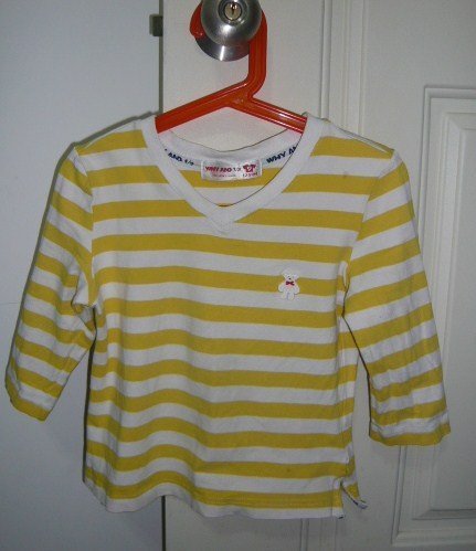 優寶購物《ubao.Tw》特貨品商城,黑貓宅配,取貨付款,(100元二手物)why and 1/2九分袖黃色條紋T(適穿至115cm) | Yahoo拍賣