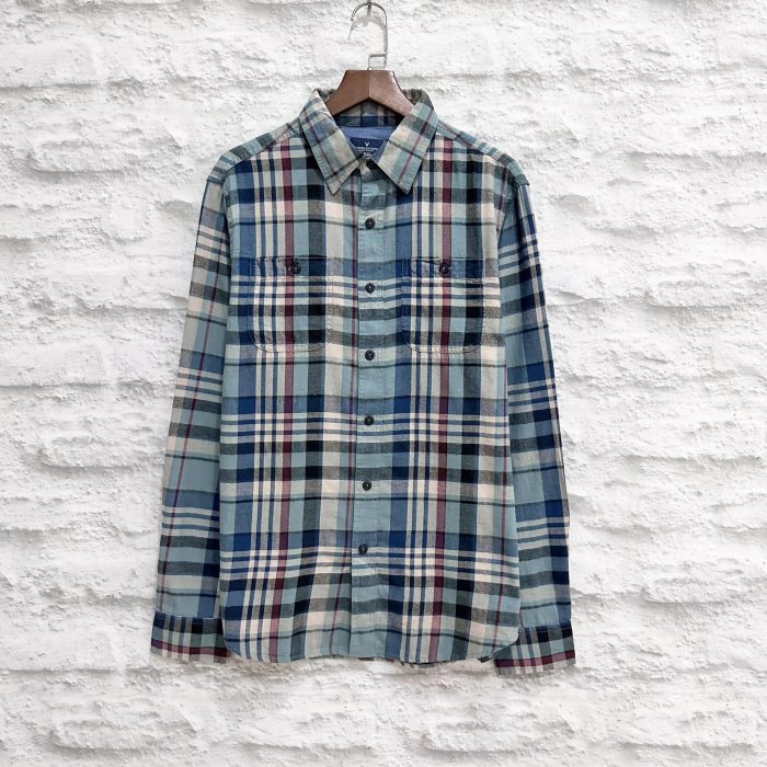 優寶購物《ubao.Tw》特貨品商城,黑貓宅配,取貨付款,Maple麋鹿小舖 American Eagle * AE 基本款棉格紋長袖襯衫 * ( 現貨XS號 ) | Yahoo拍賣