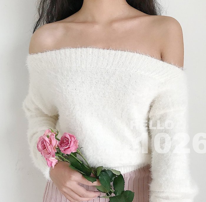 優寶購物《ubao.Tw》特貨品商城,黑貓宅配,取貨付款,++1026++歐美名媛風 孫芸芸 保暖寬鬆 針織毛料毛線衫 寬領斜肩 高腰露腰中短版 毛絨毛海兔毛 一字領兔毛毛衣上衣 | Yahoo拍賣