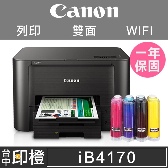 優寶購物《ubao.Tw》特貨品商城,黑貓宅配,取貨付款,【印橙台中】【改裝連續供墨】CANON iB4170 無線網路WIF雙面列印高速噴墨印表機 | Yahoo拍賣