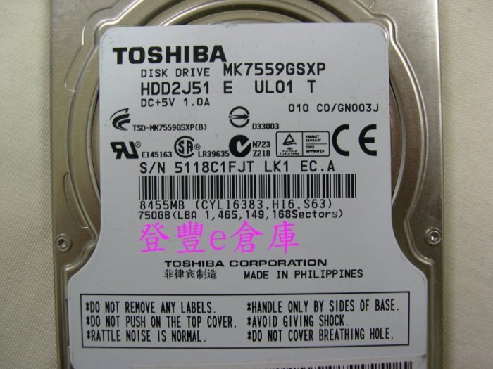 優寶購物《ubao.Tw》特貨品商城,黑貓宅配,取貨付款,【登豐e倉庫】 YF7 Toshiba MK7559GSXP 750G SATA3 筆電硬碟 | Yahoo拍賣