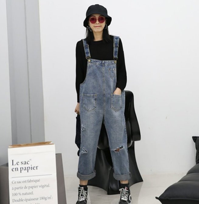 優寶購物《ubao.Tw》特貨品商城,黑貓宅配,取貨付款,好棒棒衣舍_做舊割破寬鬆吊帶背帶牛仔連身褲_請詳看尺寸清倉品不退不換 | Yahoo拍賣