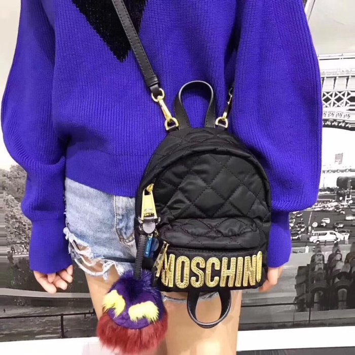 優寶購物《ubao.Tw》特貨品商城,黑貓宅配,取貨付款,╭☆包媽子店☆Moschino 新款 尼龍菱格刺繡logo雙肩背包 mini款~多種背法 | Yahoo拍賣