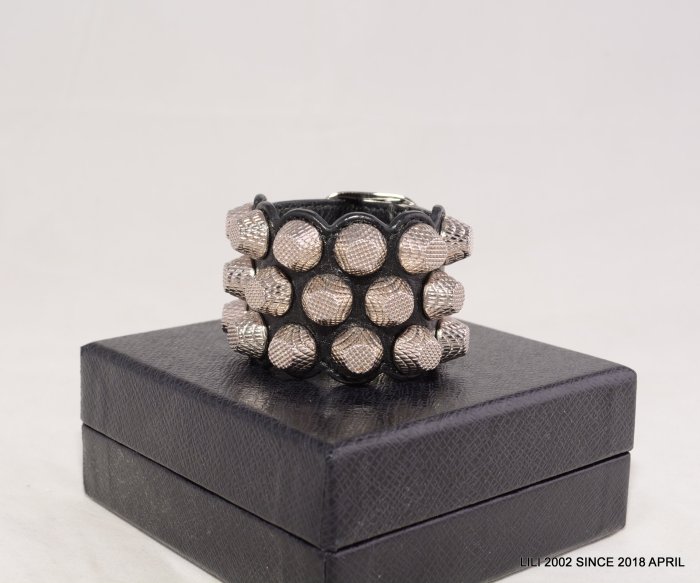 優寶購物《ubao.Tw》特貨品商城,黑貓宅配,取貨付款,[LiLi二手精品]真品 BALENCIAGA co 黑色鉚釘皮質手環~ 9成新 | Yahoo拍賣