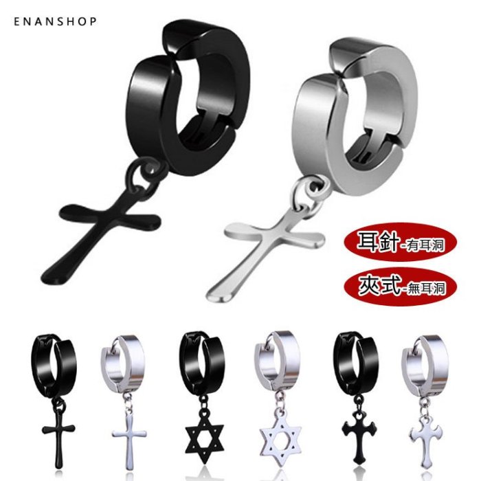 優寶購物《ubao.Tw》特貨品商城,黑貓宅配,取貨付款,【鈦鋼】十字架耳環 耳針 耳夾 無耳洞可 六芒星耳環 圈圈耳環 龐克 耳環 惡南宅急店【0288D】 | Yahoo拍賣